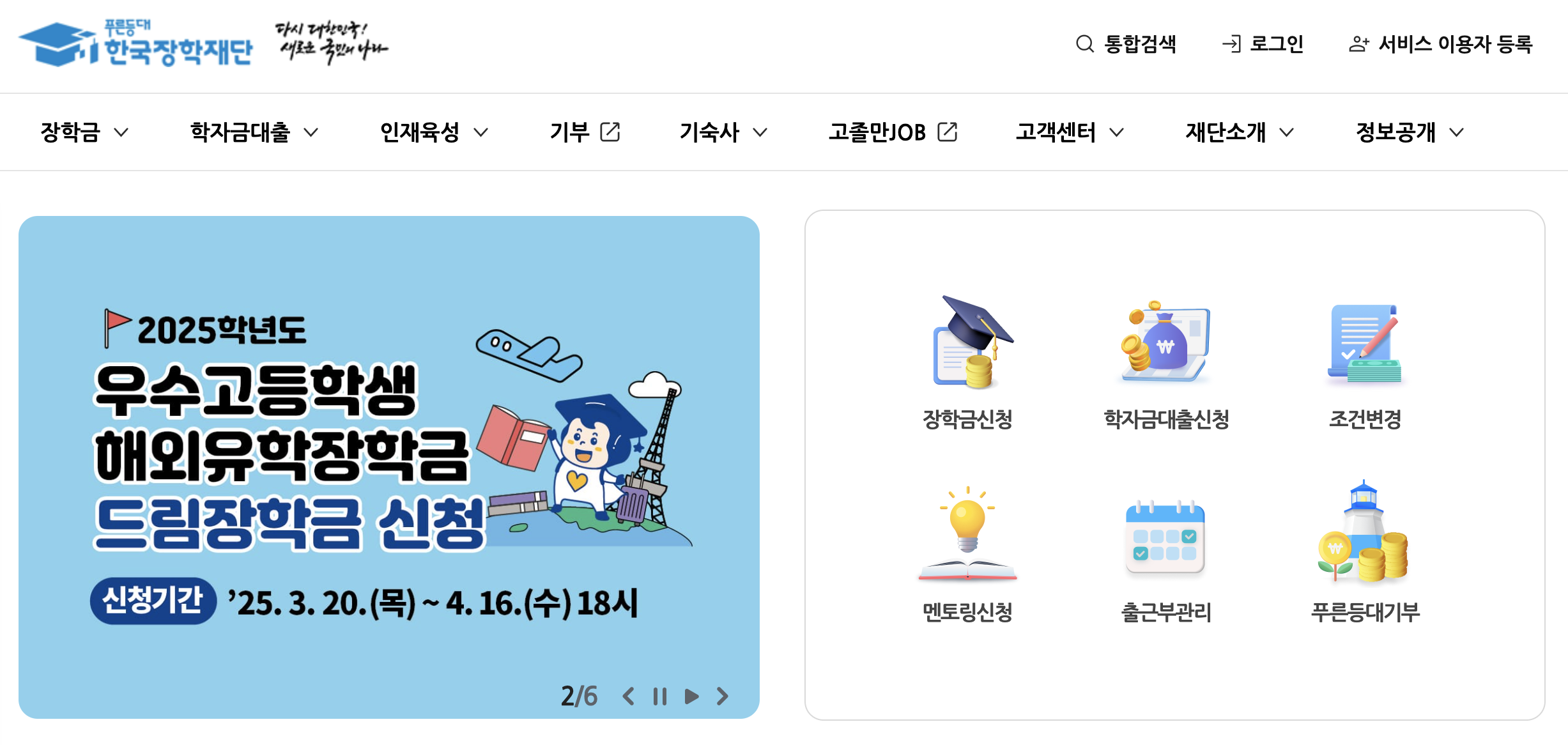 꿈사다리 장학금 신청 홈페이지